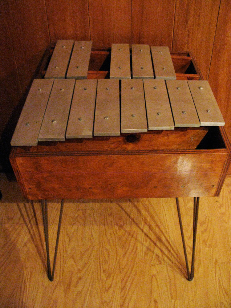 First, you read Jim Doble‘s brief but precise instructions for making xylophones. Read ’em again – they’re clearly written, with a basic illustration and links to photos and sound clips, and then find some wood or metal that you can work easily, and get busy: