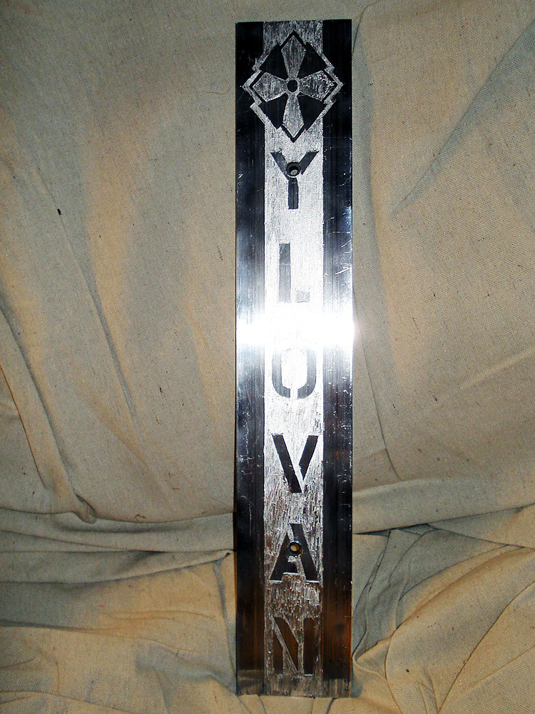 In keeping with the rest of the van’s aesthetic – and my utter lack of refined metalworking skills – it’s going to be extremely rough, ed applied with near-blunt force directly to the metal on the center key. This is an F that lines up with the hood’s centerline and – appropriately modified – should lend a sort of Peterbilt-like elegance to XyloVan’s prow.