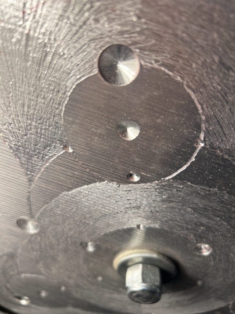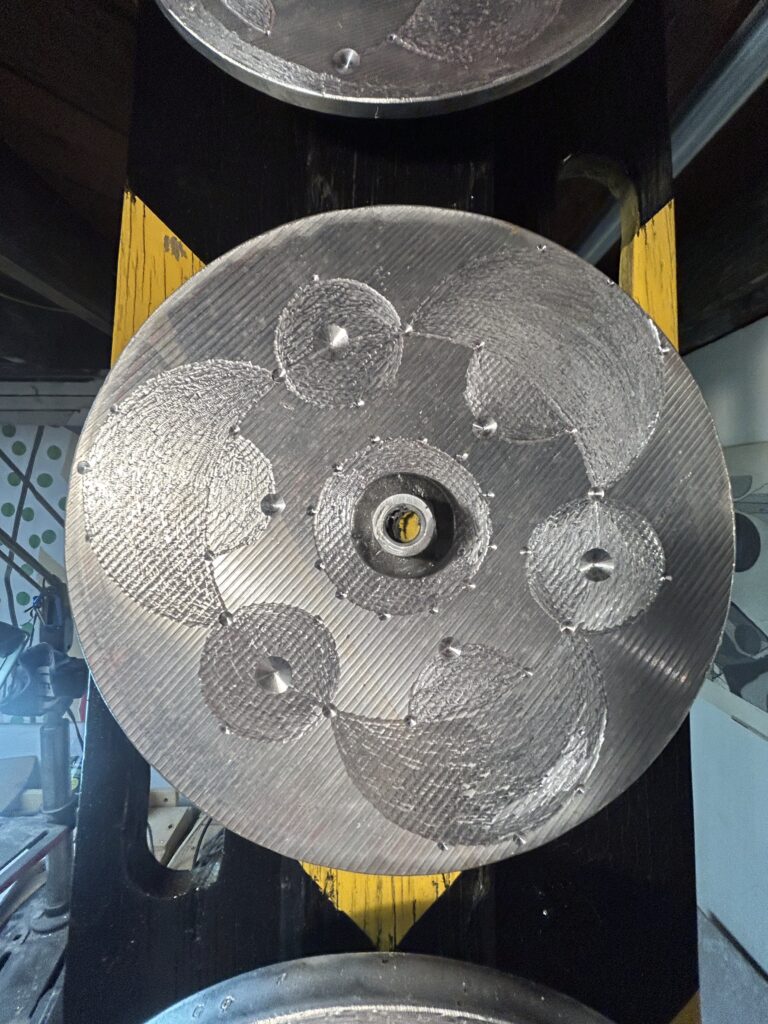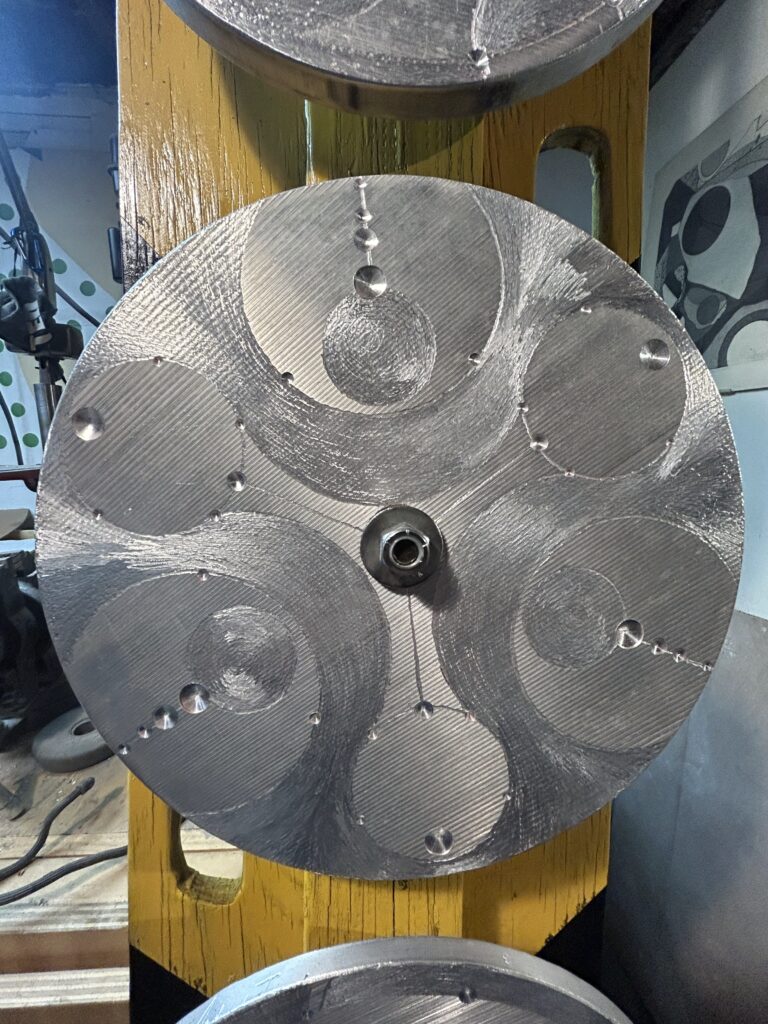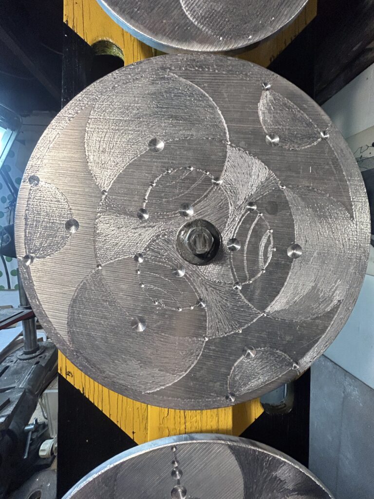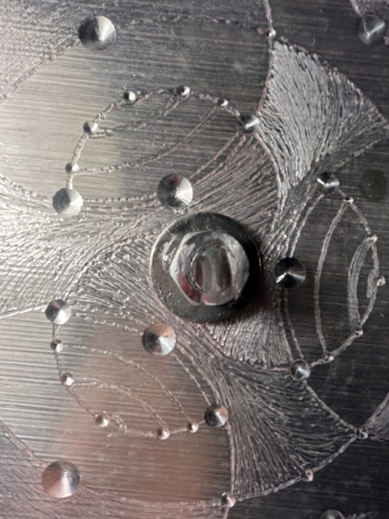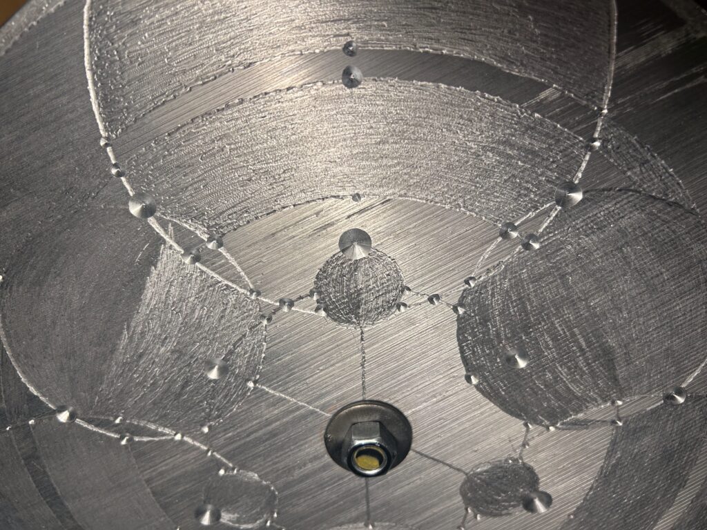 And I engraved all 7 of the otherwise dull chunks of metal, using a 1/16″ burr bit on my Dremel for the lines and shading, and then a series of drillbits for the points, all of which … took a few hours.