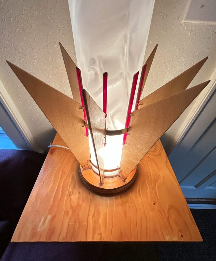 When I designed the remodel, I figured that we would want recessed, dimmable lighting of some kind that comes on when you hit a switch at the bedroom entrance, so I installed LED strip lighting along the spine of the room, with plan to cover it with shapes to diffuse it and help it bounce.